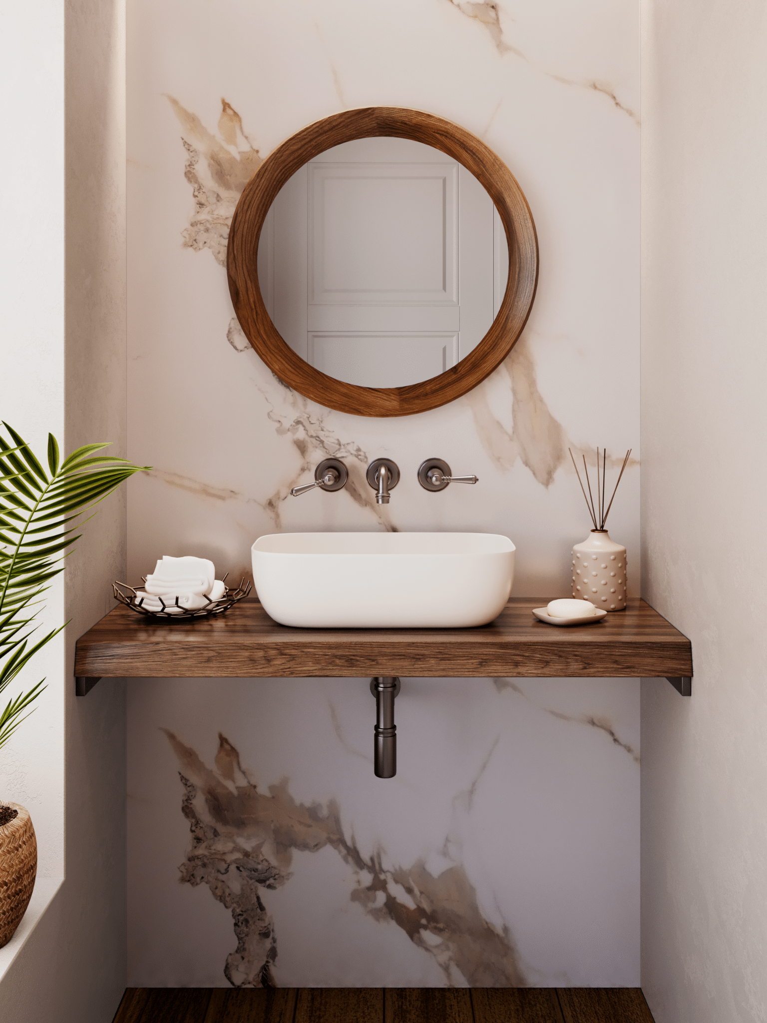Choosing the right panel is more than just about colour. It’s about the atmosphere you want to create. Think about your fixtures, lighting, and materials as they can all work together to make your marble panel shine.