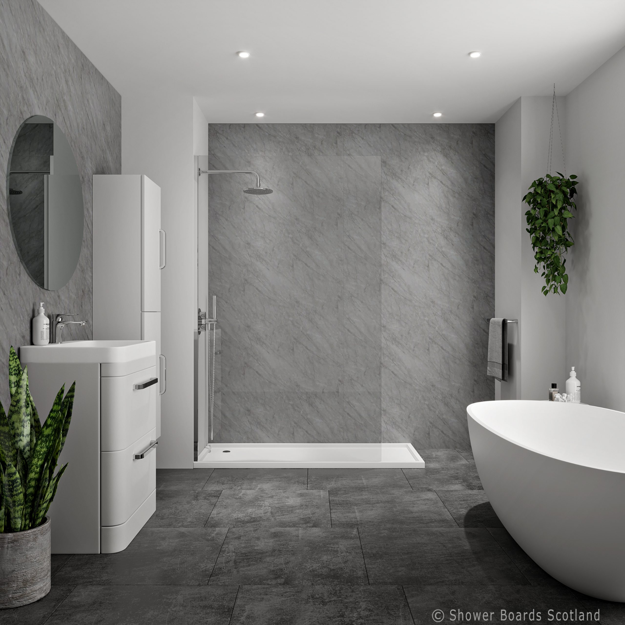 6. Grey Marble Gloss Shower Panel