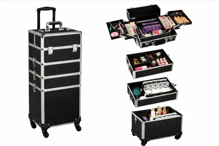 Yaheetech 4-in-1 Trolley Cosmetic Case Makeup Beauty Case Artist Case with Wheels and Telescopic Handle for Travel. The Yaheetech 4-in-1 Rolling Makeup Case offers versatility and portability. More than just simple storage boxes, this case changes according to your appetite. Whether you are a beginner to make up or just have a huge collection, its modular design lets you keep everything organized without feeling confined. The “4-in-1″ concept enables you to use it as one piece or break it down into 4 pieces according to your needs. It is handy, particularly if you like to mix things up occasionally, and all that. Just need a smaller case for a quick trip? No problem. Preferring full storage at home and? Stack it all together.”